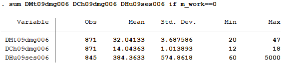 sum DMt09dmg006 DCh09dmg006 DHu09ses006 if m_work==1