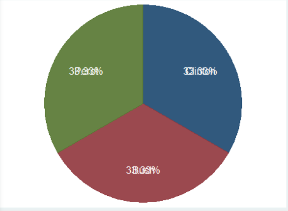 범례를 지우기 위해 옵션에 legend(off)를 기입하였으며, 파이라벨에 라벨명과 퍼센티지를 기입하기 위해 plabe() 옵션을 사용하였다. plabel 괄호 안을 살펴보면 size(large)는 텍스트 크기를 키우기 위한 옵션이며, 글자색은 color(white)로 수정하였고, gap() 옵션은 파이 그래프 중심으로 텍스트를 가까이 위치시키라는 옵션이다. 이러한 gap 옵션을 사용하지 않으면 라벨명과 퍼센티지가 중복되어 나타나 가독성이 떨어지기 때문이다.