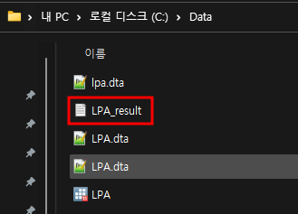 보충 설명을 하자면 file = LPA_result.txt;는 LPA_result라는 txt 파일로 데이터를 저장해달라는 저장 옵션을 지정하는 것이다. 만약 저장 파일의 구체적인 폴더 경로를 정하고 싶다면 이를 기술해줘야 한다. (예시: file=C:\Data\LCA_1213.txt;)