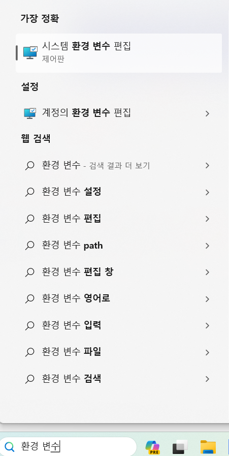 (1) 검색창에 '시스템 환경 변수 편집' 검색 & 클릭